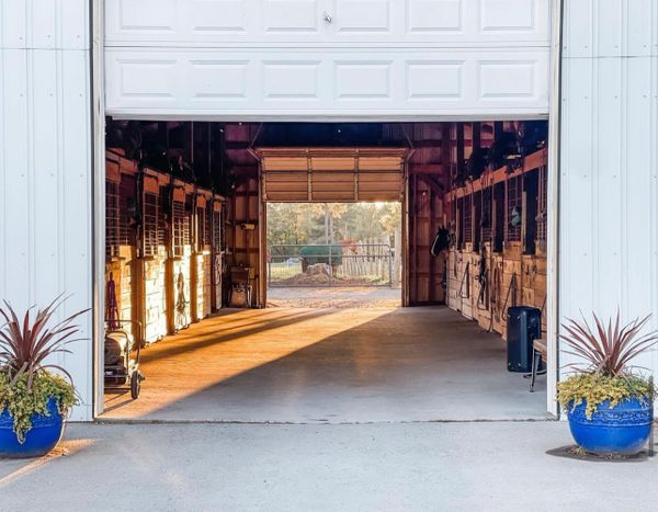 Oversize center aisle way with concrete floors, cross ties, and straight ties in each stall. Each 10x10 stall is equipped with lights, fans with enclosed motors, slow feeder hay bag, water, salt lick, and pine bedding.